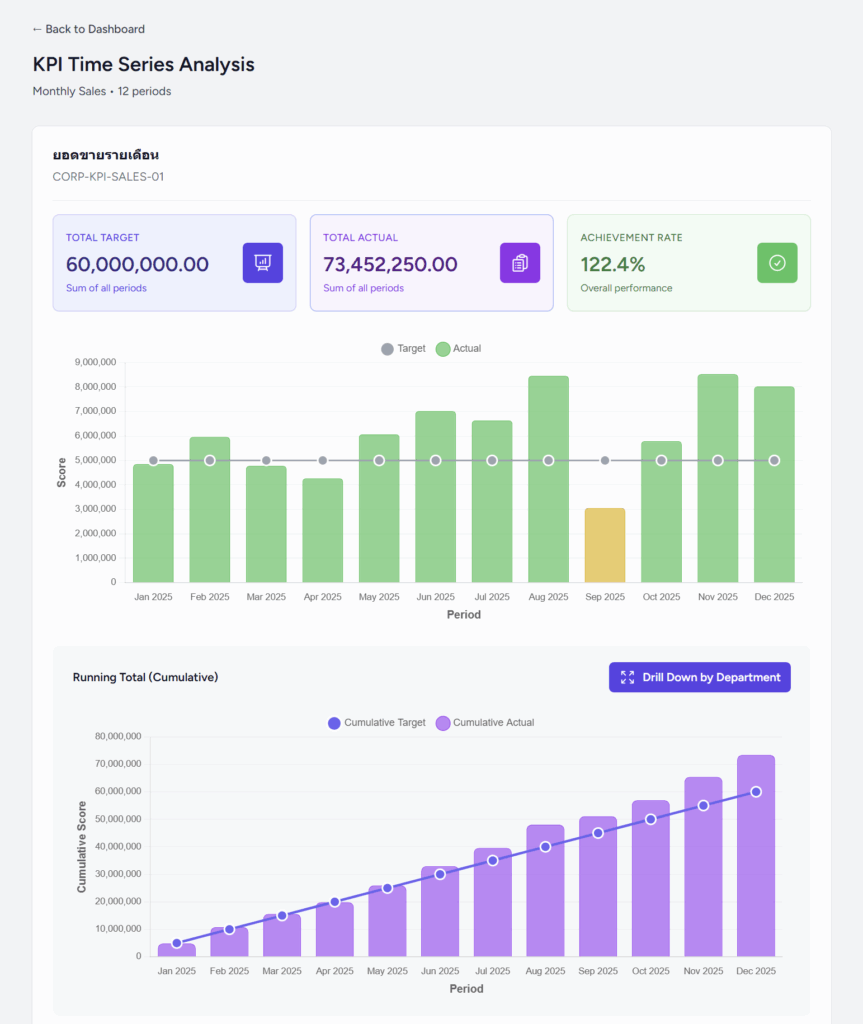 - Department KPI คำนวณจาก Individual KPI รายเดือน